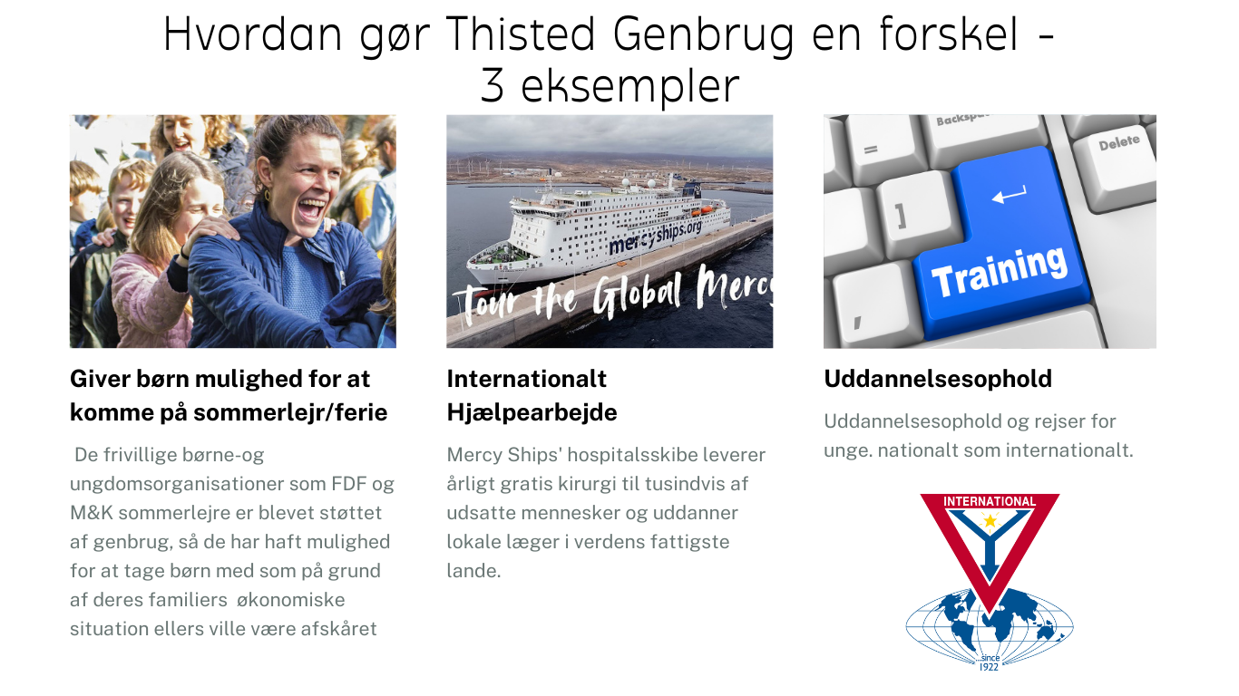 Hjælp andre: Ved at aflevere dine brugte ting til Y's Men's Genbrug-loppemarked, giver du andre mulighed for at få glæde af dem.